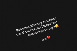 斯科尔斯写道:“迈克尔(卡里克)身上肯定有某种特别之处……因为曼联最近4场比赛表现简直烂透了……晚安😘托纳利❤️”