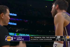由于这是东契奇本赛季常规赛的第16个技犯,按照规则,他下一场将被停薪禁赛!