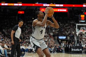 上半场比赛,马刺后卫福克斯攻防两端打得高效且轻松,场上作用显著,他出战12分钟,5中4,三分1中1拿到9分3篮板1助攻2抢断,正负值+30!