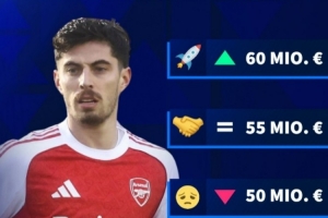 体育资讯3月8日讯 德转近期将更新英超球员身价,并预热阿森纳前锋哈弗茨身价可能发生变化。