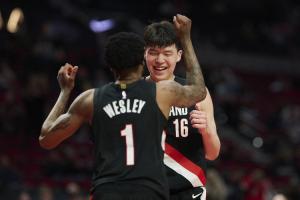 GIF-韦斯利助攻杨瀚森暴扣,自己比杨瀚森还兴奋